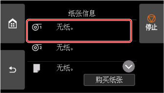 送入了任何不使用的纸张时,会出现要求将其取下的提示信息。 按照屏幕上的说明取出纸张后,转到下一步骤。