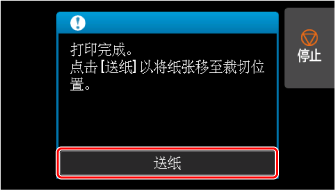 点击或触摸送纸或卷回,然后将卷纸送入到打印头与纸张前端不会发生摩擦的位置。