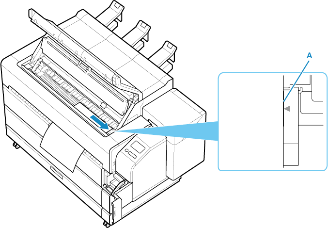 装入单页纸,使其与右侧的纸张对齐线(A)平行。 装入纸张歪斜会导致错误。