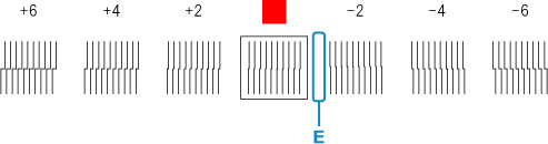 示例2:将倾斜调整杆移动到错位最小的两组线条的编号之间或者编号与正方形标记(E)之间的位置。 在这种情况下,选择-1。