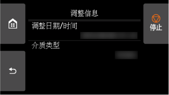 可以确认当前应用的校准调整日期/时间和使用的介质类型。