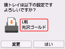 表示された用紙のサイズと種類が、後トレイにセットした用紙と同じであれば[はい]を選ぶ
