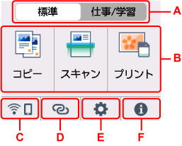 クラウド印刷や書類の送付、レポート用紙の印刷など、在宅での仕事や学習に役立つ機能を集めた「仕事/学習モード」に切り替えることができます。