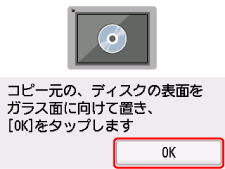 7. 表示される案内に従って、コピー元のディスクを原稿台にセットし、[OK]を選ぶ