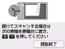 続けてスキャンを行う場合は、次の原稿を原稿台にセットしてスキャンを開始してください。