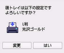 表示された用紙のサイズと種類が、後トレイにセットした用紙と同じであれば[はい]を選ぶ