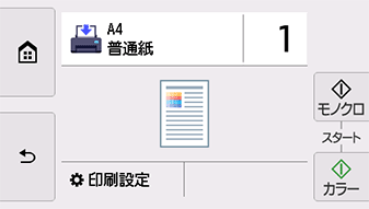 (モノクロ)- モノクロでコピー、スキャンするときなどにタップします。