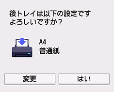 • [しない]を選んだ場合は、用紙の設定を確認する画面が表示されなくなります。印刷する際は、[後トレイの用紙設定]または[カセットの用紙設定]で用紙のサイズと種類を正しく設定してください。