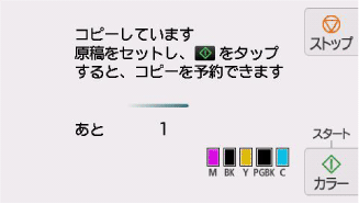 次の原稿をセットして、コピー中の原稿をコピーするときに選んだボタン([モノクロ]または[カラー])と同じボタンをタップしてください。