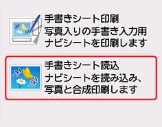 ここでは、手書きナビシートを印刷して写真に手書き文字を合成するまでの操作手順について説明します。