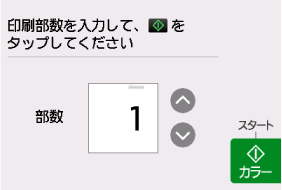 をタップして、印刷部数を指定します。タッチし続けると、10枚ずつ部数が増減します。