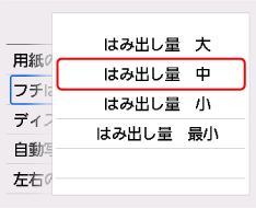 ここでは、フチはみ出し量を設定する操作を例に、設定変更の手順について説明します。