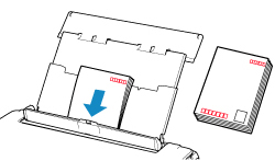 はがき、往復はがきに印刷するときは、郵便番号を下に向けてセットしてください。