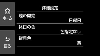 週の始まり(日曜日、または月曜日)、色を付ける休日、背景色などを指定できます。
