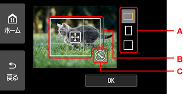 印刷したい範囲をトリミングし、[OK]を選ぶ