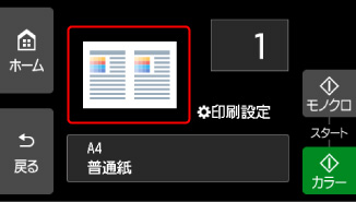 コピー待機画面のレイアウトを選んで、直接2in1コピーを選ぶこともできます。