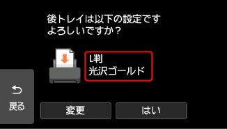 表示された用紙のサイズと種類が、後トレイにセットした用紙と同じであれば[はい]を選ぶ