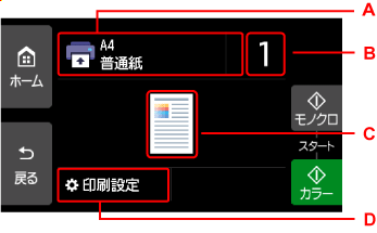 D:印刷設定項目が表示されます。
