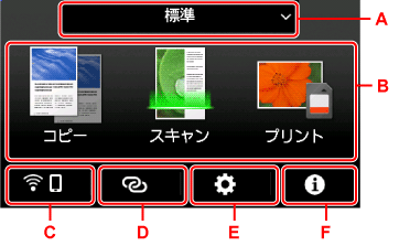 プリンターの電源を入れると、タッチスクリーンにホーム画面が表示されます。