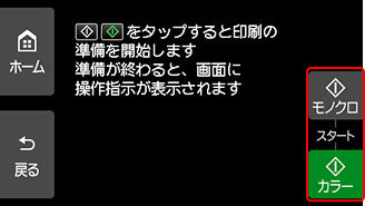 メッセージを確認してから、[モノクロ]または[カラー]をタップする