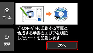 ここでは、ディスクレーベル手書きナビシートを印刷して、写真に手書き文字を合成してディスクレーベルに印刷するまでの操作手順について説明します。