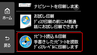 確認後、ディスクレーベル手書きナビシートを印刷し直す、または読み取り直してください。ディスクレーベル手書きナビシートを印刷し直すときは、A4サイズの白い普通紙を正しくセットしてください。