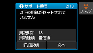 印刷やコピーするときに指定した用紙設定を変更する場合に選びます。用紙設定を変更して印刷やコピーをやり直してください。