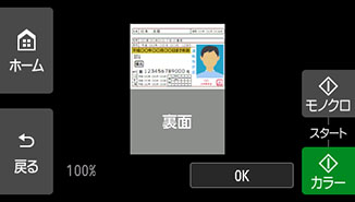 表示される案内に従ってIDカードの表面を下に向けて原稿台にセットし、[OK]を選ぶ