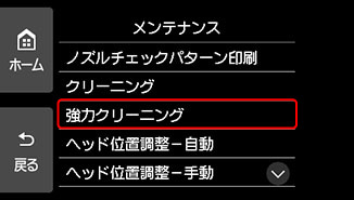 プリントヘッドのクリーニングを行っても効果がない場合は、強力クリーニングを行ってください。強力クリーニングは、通常のクリーニングよりインクを消耗しますので、必要な場合のみ行ってください。