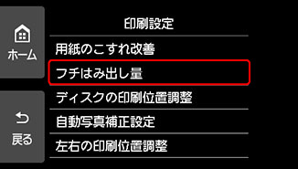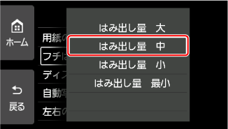 ここでは、フチはみ出し量を設定する操作を例に、設定変更の手順について説明します。