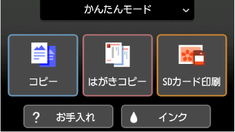 「かんたんモード」では、細かい設定をすることなく、普通紙やはがきへのコピー、メモリーカードからの写真印刷などの機能を簡単に使えます。