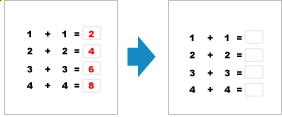 カラー原稿の黒字、グレー部分を読取り、コピーします。この機能を使用すると、赤字の解答などを消去してコピーすることができます。