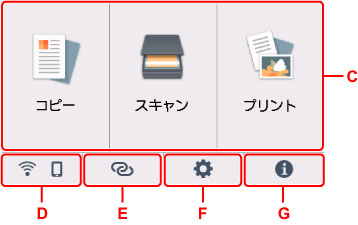 プリンターの操作パネルからコピーやスキャンなどを行うときに選びます。基本メニューを選んだあと、それぞれ詳細なメニューが表示されます。