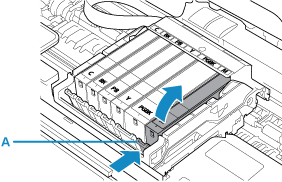 注意- プリントヘッドホルダーが動いている間はプリントヘッドホルダーを手で止めたり、無理に動かしたりしないでください。プリントヘッドホルダーの動きが止まるまでは、手を触れないでください。