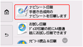 ここでは、ディスクレーベル手書きナビシートを印刷して、写真に手書き文字を合成してディスクレーベルに印刷するまでの操作手順について説明します。
