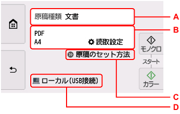 白黒でスキャンをする場合は[モノクロ]をタップする-