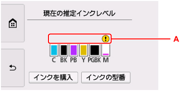 インクの残量についてお知らせがあるときは、図のAの部分にマークが表示されます。