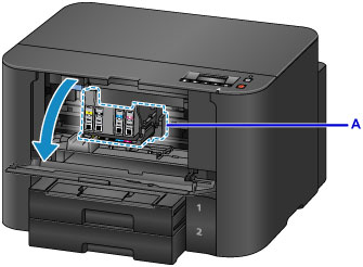 - Als u de voorklep langer dan 60 minuten open laat staan, verschuift de printkophouder naar rechts. Sluit in dat geval de voorklep en open deze vervolgens opnieuw.