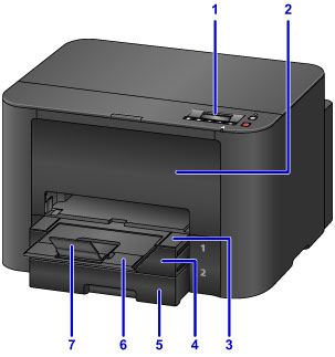 - Trekk ut for å støtte utskrevne dokumenter. Skuffen dekker kassetten når den er forlenget. La skuffen vanligvis være ute.