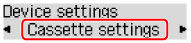 -knappen (B) til å velge Kassettinnstillinger (Cassette settings).
