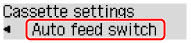 -knappen (B) til å velge Autom. matervelger (Auto feed switch).