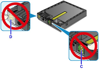 Ikke rør kontakten (C) eller grensesnittet (D) på blekktanken.