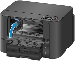 - Hvis du lar frontdekselet stå åpent i mer enn 60 minutter, flytter skrivehodeholderen seg til høyre side. I så fall lukker du frontdekselet og åpner det igjen.