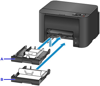 Når du skal legge papir i en kassett, legger du det med utskriftssiden NED.