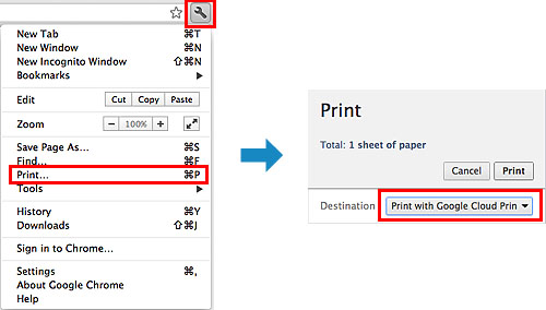 The figure below is an example of when printing from the web browser corresponding with Google Cloud Print. The screen differs depending on the applications or services supporting Google Cloud Print.