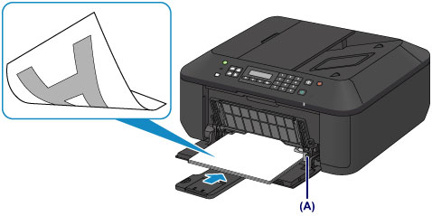Slide the right paper guide (A) to align the paper guides with both sides of the paper stack.