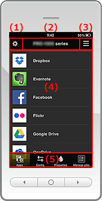I dette afsnit beskrives de skærmbilleder i Canon Cloud Printing Center, der vises på din smartphone, tablet eller computer.