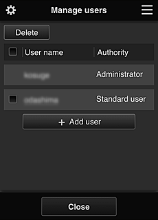 Derudover, hvis du bruger MAXIFY series printer, og du vælger Flerbrugertilstand (Multiuser mode) på Skærmbilledet Adm. printer, er det kun administratoren, der kan tilføje, slette og omarrangere apps. - Hvis du administrerer de brugbare apps efter bruger, kan alle brugere tilføje, slette og omarrangere apps, uanset indstillingen Flerbrugertilstand (Multiuser mode).