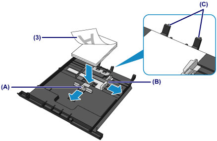 (2) Slide the paper guide (A) in front and (B) on the right to open the guides.