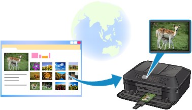 You can access the internet photo sharing site (e.g. CANON iMAGE GATEWAY and Picasa Web Albums) using the operation panel of the machine and print the photo in online photo album (photos uploaded from devices such as computer).
